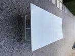 Eettafel wit 2m20 lang, 1m breed, 74cm hoog, stevig maar met gebruikssporen stukjes verf af, wit gelakt