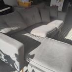Olijfgroene driezit van maisons du monde, met loungestukje en 2 extra kussens. Houten pootjes, zit gezellig. Extra lange stukje kan link of rechts gemonteerd worden. In goeie staat, enkel 1 kant wat b