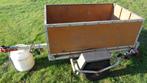 Aanhangwagen. Staat : gebruikt. Klein model. Kan ook gebruikt worden voor zitmaaier , motoculteur ,... Verlichting niet gecontroleerd , vermits reeds enige tijd buiten gebruik. Opzetbak kan eenvoudig