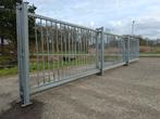 Nette vrijdragende schuifpoort totale breedte 10 meter doorgang ca 7 a 7,5 meter hoogte 2 meter helemaal compleet en gedemonteerd enige wat er aan mankeerd is dat er 2 spijlen uit zijn zie foto 5 en 6
