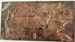 Grand tableau en cuivre repoussé représentant une scène de chasse dans la savane africaine (1 chasseur, 2 chiens, une antilope) si