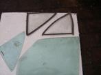 Twaalf oldtimer autoruiten waarvan een aantal met mercedes symbool. Op de foto's zie je de vorm en de vermedingen die op de ru