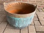 Grande bouilloire en cuivre rouge avec grande poignée/poignée : 40 cm de diamètre et 26,5 cm de hauteur. Peut être utilisé pour le bois, comme cache-pot, pour ranger la laine à tricoter,... Un peu de