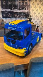 Fg-truck met uitzonderlijk mooie body, in perfecte staat. De stickers kunnen uiteraard eenvoudig verwijderd worden. Model heeft enkel binnen op tapijt gereden. Is nu elektrisch maar kan terug naar ben