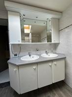 Badkamermeubel met 2 lavabo's en spiegelkast + ligbad. Wegens renovatiewerken graag dit jaar (2025) nog uit te breken en op te