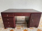 Zware houten bureau, schuiven en kasten voor en achteraan