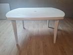 Witte tuintafel, in gebruikte maar goede staat. Materiaal: plastic afmetingen: - hoogte: 73cm - lengte: 135cm - breedte: 90cm alle