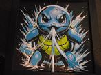 Een ge-3d-printe foto van squirtle met houder om aan de muur te hangen. 22Cm op 22cm.