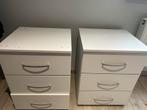 Set van twee nachtkastjes af te halen kan nog een ronde mee maar wel gebruikssporen zoals te zien op de foto’s vooral bovenaan het blad , de rest nog in goede staat kleur wit