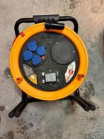Verlengkabel 25 m ip44 met 4 stopcontacten en maximum 3500 w. Beveiliging 30 ma. Zo goed als nieuw, paar keer gebruikt tijdens ver