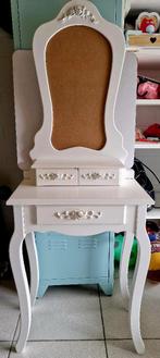 Te koop : houten witte make-up tafel. Spiegel is gebroken bij het verhuizen. Indien gewenst kan je er terug een spiegel insteken, alles is nog voorzien. Voor de rest compleet. Afmetingen : hoogte : 1