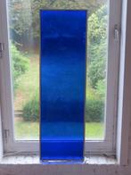 4 x formaat 41,5 cm x 135,7 cm = blauw glas 2 x formaat 64,7 cm x 121,2 cm = rood glas (met tussenverdeling) in aluminium kader af