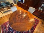 Prachtige ronde houten tafel met ingelegd sterpatroon – diameter 150 cm te koop: een stijlvolle ronde houten tafel in uitstekende