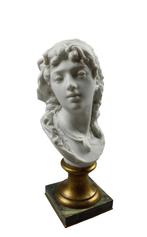 Buste suzon en porcelaine, sur socle en bronze et sur pied de marbre vert. Excellent état. Sculpture de auguste rodin. Pas d'e