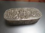 Zilveren tabaksdoos 107,5 gr heel mooie, heel oude tabaksdoos er ontbreekt een stukje van de zijkant van het deksel t.h.v. Het scharnier in presentatietoestand is hier niets van te zien heeft ook geen