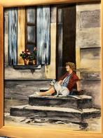 Afzonderlijk te koop zittende vrouw: aquarel 48cmx38cm zonder kader - met kader en glas 66cmx56cm --> 50€ konijn: kleurpotlood 35,5cmx27cm tekening - met kader en glas 50cmx41,5cm --> 30&eu