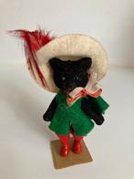 Petite figurine chat, souvenir d’ypres. 1960 En très bon état hauteur : 9 cm animal floqué + tissu ( bottes en plâtre ?)