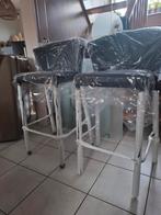 2 tabourets neuf, jamais utilisé. Assises en cuir noir, pieds en métaux noir , dos arrondi, très confortable. Hauteur du sol avec assises 74 cm, hauteur total avec dossier 1m01cm, largeur assise 44cm,