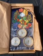 Panneau d' affichage vintage, station météo, bayer-gorsac-saint-trond, années 1960 nouveau dans sa boîte d'origine, jamais utilisé, hydromètre+baromètre+thermomètre bayer-gorsac -dimensions 22