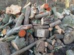 Partiellement scié en rouleaux, en partie sur de plus grandes pièces. Bois de chauffage frais composé d'un mélange de chênes,