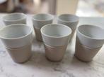 Zes koffietassen/mokken uit wit porselein met ecru siliconen rand (afneembaar) in nieuwstaat. Nieuwprijs: €24,90 per set van twee. Hier 25€ voor alle zes.