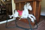 "blikken" oud ijzeren schommelpaard, met mechanisme op 4 veren, vermoedelijk 100 jaar+ oud, in originele staat, leuk en