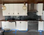 Keuken deel 1: 2m46 lang deel 2: 60 cm lang rij bovenste kasten: 1m06 hoog en diepte 37 cm rij onderste kasten: 86 cm hoog en 54 c