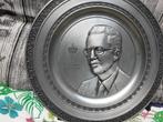 Assiette en étain du roi baudouin 1 étain à 95% et en bon état roi des belges du 17/07/1930 au 31/07/1993 plus d'explications voir photos superbe à avoir pour les fans de la famille royale