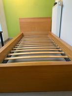 Lit brun 90 x 200 sommier à lattes pour une personne (pas de matelas) côté tête : hauteur 77 cm côté pieds : hauteur 31 cm la larg