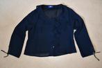 Deze mooie sexy transparante blauwe bloes van d'aury in maat 48 heeft een wijde rondom kraag die vooraan overgaat in een vertikale bef. Onderaan kunnen de lange mouwen kan met een lintje sluiten.