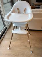 Kinderstoel met eettablet. Te gebruiken op 3 hoogten. Wanneer je hem gebruikt als kinderstoel is de hoogte 62cm, aan een tafel is de hoogte 83cm en aan het eiland, de hoogste stand, is de hoogte 92cm.