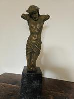 Houten jezusbeeld op massief marmeren sokkel. Heel fijn beeldhouwwerk hoogte: 47cm (waarvan hoogte beeld: 34cm)