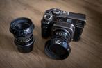 Mamiya 7 lens 65mm f4 80mm f4 appareil photo argentique à visée télémétrique (moyen format 6x7) en parfait état de fonctionnement. Quelques traces d’usures apparentes. Appareil robuste, léger. N’hésit