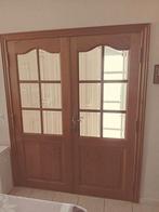 Dubbele deur in massieve franse eik met geslepen glas br 156cm hoogte 200cm (78 cm breedte per deur) 4cm dik vraagprijs 120 euro kan ook per stuk geko