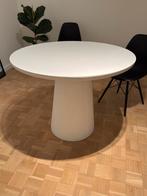 Tafel van 1m diameter (75 cm hoog) met witte metalen poot en wit tafelblad. Ongebruikt