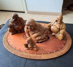 4 boeda,s hoogte die ligt is 11cm hoog en 13cm br .de andere zijn 11cm hoog ,10cm hoog en 7cm hoog ,zijn allemaal in hout .en zitten op matje .