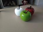 à vendre : ensemble de 3 pierres décoratives/pommes en céramique (vertes, rouges et blanches). Finition brillante avec poignée noi
