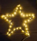 Een mooie ster, info zie foto, met een snoer van ongeveer 5 m om in een stopcontact te steken. Twee korte slingers (2,45 m) met 8
