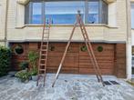 Houten ladder uit 3 delen van elk 3,80 meter. De onderste 2 delen kunnen apart gebruikt worden. Breedte voet : 78 cm breedte op hoogste punt: 34 cm