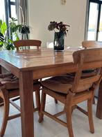 Vierkante zware tafel met stoelen 110x110 h 75 goede staat