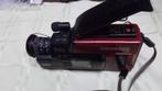 Jvc video camera model: gr-60e ( rode kleur) met allerlei toebehoren. Zoals originele oplader, 3 batterijen, omvormers om eigen videomontages te maken, bijhorende kabeltjes, een stevige lederen origin