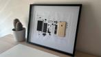 Een exclusieve gedemonteerde iphone 6 (goud) in kader. Elk onderdeel is zorgvuldig geplaatst voor een fascinerende kijk op de complexiteit van het ontwerp en de ingenieurskunst achter de iphone. Het i