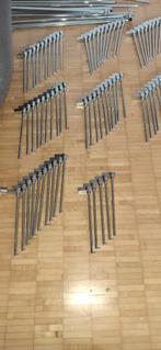 Muurstangen beam systeem voor winkelinrichting met t-arm en railstangen in chroom 8 stuks van 2m lang 30 stuks van 160m lang t-armen en rails zijn niet in de prijs inbegrepen maar kunnen bijkomend wor