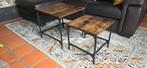 A vendre 2 tables basses gigognes en bois et métal noir en très très bon état quasiment neuve (2mois), la plus grande fait 50cm x 50cm et 46cm de hauteur, la plus petite fait 40cm x 40cm et 38cm de ha