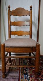 6 stevige eiken eetkamerstoelen, en alle 6 in zeer goede staat, met afwasbaar zitvlak en inclusief 6 stoelhoezen. Hoogte stoel 107 cm, breedte zitvlak 50cm. €40 voor de 6 stoelen samen.