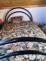 Lit en métal noir avec sommier à lattes et matelas