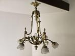 Lustre ancien avec six belles roses en verre soufflé à la main. Laiton massif. Le lustre pèse environ 12 kilogrammes. Le lustre po
