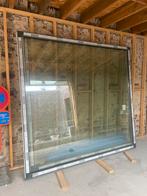 2 vaste ramen in pvc te koop, 2530x2390 mm, kleur antraciet houtnerfstructuur buitenkant, wit binnenkant. Dubbel glas uw 1,2. Verk