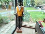 Statue plâtre habillé jaune et noir sur socle en bois une petite restauration lui est nécessaire,juste un peu de peinture hauteur avec socle 1,86m pas