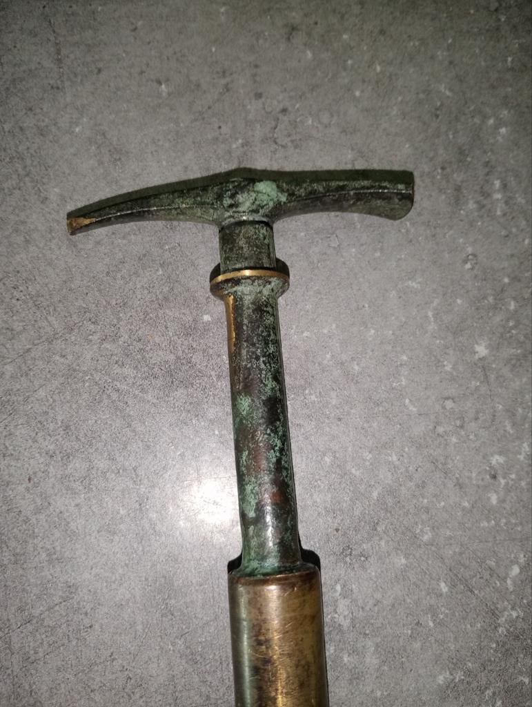 Canne de marche ou collection. Fut en bois solide/ ferme. Bout férule en métal. Hauteur totale de 89 cm . Pommeau piolet en bronze / laiton ?. . D autres modèles disponibles. Voir mes autres annonces